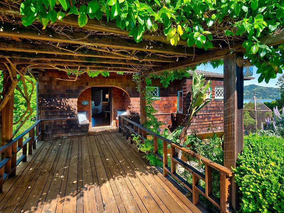 Charming 1896 Pagoda House offers an historic canvas to paint your dream home. Wood shingled exterior & coved porch. Comfy LR w WBFP, wood beam ceiling, bookcases & refinished hdwd flrs. Expansive views to Salesforce Tower from your private sun-room. 2 BR's on the upper level w Bay views. Ba w period claw-foot tub. Kitch on lower level w patio. Dining room w doors to view deck. Unfinished basement. 1bd/1ba cottage. 1-car garage. Lush garden.