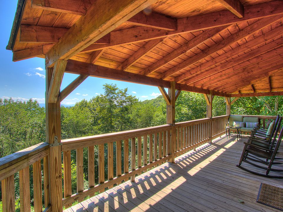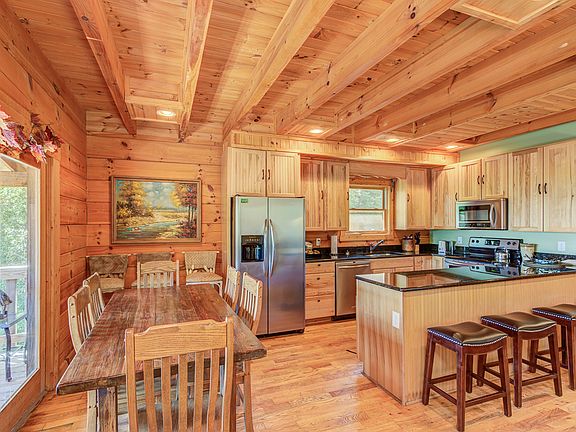 BIG VIEWS! Incredible income on this fully furnished log home with long range views of Beech Mountain. Sitting on top of the mountain with well maintained roads, this beautiful log cabin is the quintessential getaway. Enjoy the views from 3 levels. Perfect floorpan for large groups with game room/den and 2 complete master suites. Great outdoor space with fire pit, 2 covered porches and a hot tub. Main floor features a bunk room, bedroom, bath and open great room with lovely fireplace and cathedral ceiling. The twig railing for the staircase and loft upstairs leads to an open Master suite on the second level. Downstairs you will find a large den with gas logs, laundry, another master suite with jetted tub and private deck with hot tub. Quality features include granite countertops, hickory cabinets and tiled baths. This home is sold turn-key and ready for the next buyers to enjoy or rent out for additional income.