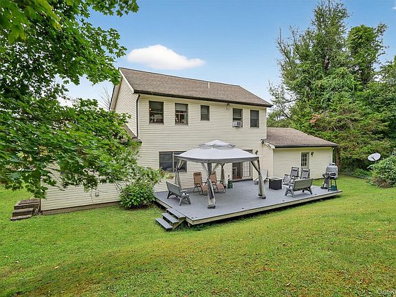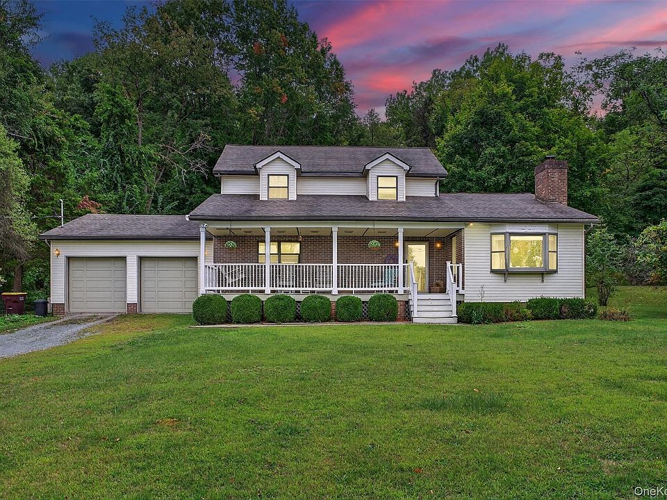 Beautiful country living in this wonderful colonial in a private setting! Sitting on two acres on a quiet road, this 2,004 square foot home features three bedrooms -- including a main floor bedroom with direct access to a full bath -- and two full bathrooms. The living room is a stunner with cathedral ceilings, a wood burning fireplace with gorgeous brick and stone work, and lots of natural light with a bay window & other windows. The backyard is a bucolic oasis with a great back deck. Lots of curb appeal with classic front porch. Enter home to bright & airy tiled foyer. Stunning wide-plank hardwood floors throughout the main level. Kitchen features stainless steel appliances, and adjoining formal dining room with french doors lead to oversized back deck. There's also a mud room/laundry room with rear side entrance to the home . . . Upstairs includes two more bedrooms, a full bath with dual sinks and a tub, lots of side storage, and pull stairs up to the unfinished attic . . . Beautiful and mature property with perennial gardens, apple trees, hydrangeas and more -- there's even a trail behind the property that leads up to the world famous Appalachian Trail! . . . Some key updates: NEW FURNACE installed 2024, hot water heater about five years old. There's also a GENERATOR for peace of mind (with automatic switchover, and covers about 75% of the home) . . . Two-car attached garage just off the kitchen. Full, unfinished basement provides lots of storage space. Radon system already in place . . . Just minutes to the wonderful Village of Warwick and all it has to offer, not to mention hiking, skiing, boating, entertainment, fantastic dining options, orchards, Farmers Markets, wineries, breweries, biking/walking trails, drive-in movie, bowling alley, schools, library, hospital, and so much more. Ideal commuter spot, too. This home and property has everything you need -- just move right in and unpack!