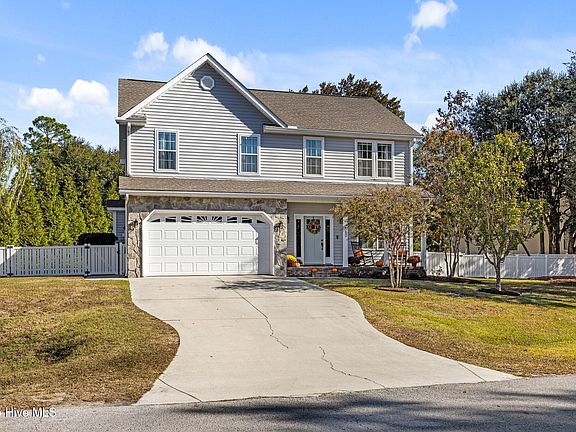 Beautifully maintained 4BR/2.5BA home in desirable Quailwood Acres near Star Hill Golf Course! This 2300 square foot home features wood floors, granite countertops, custom built-ins, and a bonus room ideal for a playroom or office. Upstairs laundry and an attached 2 car garage add every day convenience. Enjoy the screened in porch and patio overlooking a large yard equipped with irrigation and a deep water well. No HOA dues and located in an award winning school district- all just ten minutes from the Emerald Isle beach access.