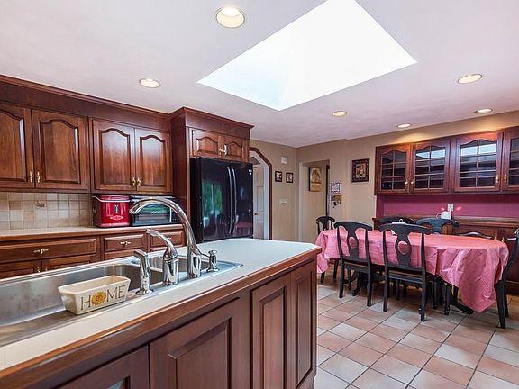 Enjoy the summer in this Stunning Split Entry with 3 season porch overlooking in ground pool. Kitchen is a Cook's delight with cherry cabinets, plenty of counter space newer stove plus separate Jen-Air grill with two burners. Entertain in sunny dining area with built in china cabinet and bay window looking out on manicured yard and gardens. Main level boasts formal living room with gas fireplace, built in shelves and bow window. Spacious master has walk in closet. There are two additional bedrooms on first level. Bedrooms and living room have gleaming hardwood floors. Full bath has Jacuzzi and steam shower. Uniquely designed lower level has fire placed family room, two bedrooms, bonus room for office or storage, full bath and laundry room. IN LAW has eat in kitchen, large living room, 2 bedrooms and bath and a half. Home is minutes from major routes and commuter rail. A MUST SEE!!!