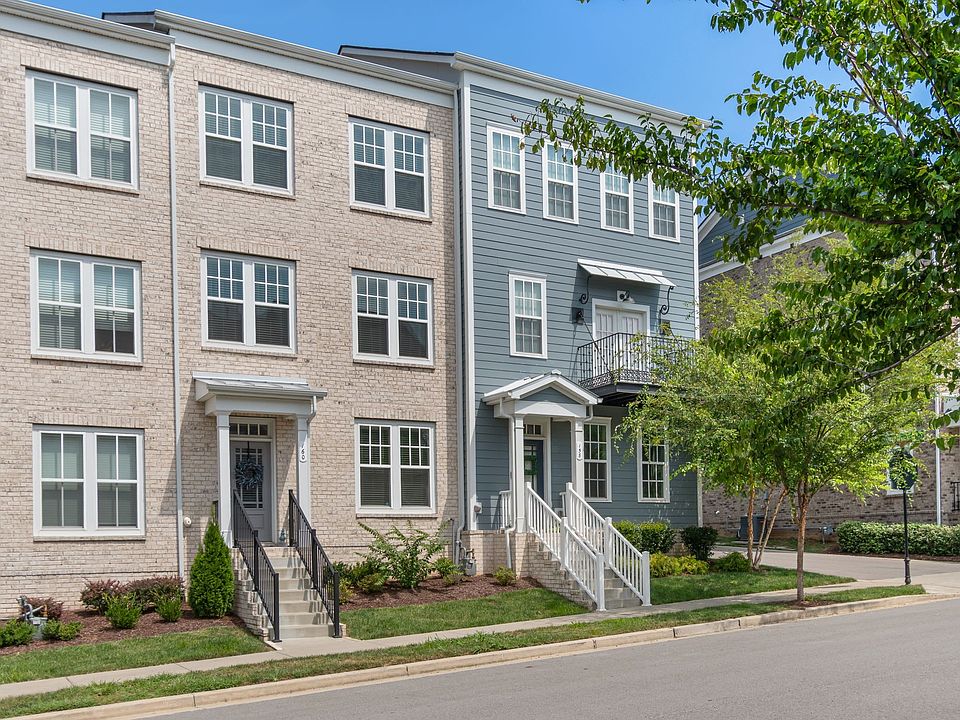 Gorgeous, like-new townhome elevated with sophisticated designer finishes located in the highly sought-after, walkable, Burkitt Commons community—just minutes from the heart of Nolensville. Step inside to a light-filled, open floor plan enhanced by gorgeous wood flooring (no carpet), recessed lighting, upgraded fixtures, new blinds, and crown molding throughout. Upon entering, you'll find a bedroom or office complete with a full bath - perfect for a roommate or family member to have their own space. The main floor features a gourmet kitchen, showcasing upgraded cabinetry, quartz countertops, a sleek modern backsplash, and an expansive island perfect for entertaining. The 3rd level features two spacious bedrooms each with their own full bath, offering comfort and privacy for family or guests. The primary suite impresses with a tray ceiling, custom frameless tile shower, and spa-like upgraded bath. The two-car garage includes an epoxy floor for a polished, durable finish. Enjoy a low-maintenance lifestyle with community amenities including a dog park and pocket park—plus walking distance to local shops and eateries. A rare blend of style, comfort, and convenience awaits!