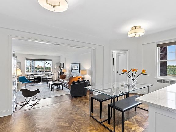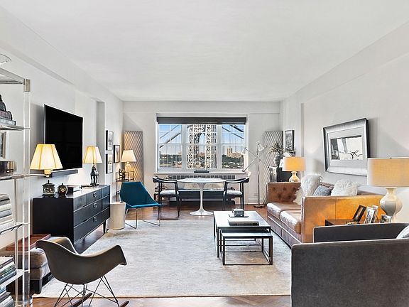 EXPECTATIONS EXCEEDED Designed and crafted to perfection, this exquisite high floor Castle Village 1-line redefines excellence and sets a new standard for quality living in Upper Manhattan. Post-card views from every room span from the Palisades to the GWB down the Hudson River to the Freedom Tower; a dramatic and devastatingly beautiful backdrop for this sublime 2-bedroom, 2-bathroom home. The open airy living space is grounded by warm herringbone floors framed by pristine moldings and skim-coated walls. A solid-slab Quartzite island is the centerpiece of the kitchen which boasts Bertazzoni appliances, wine storage, clean shaker-style cabinetry and porcelain tile floors. The split bedroom configuration is ideal for absolute privacy. Each bedroom has stunning views and en suite baths; one is classic Deco with stall shower, Kohler pedestal sink and Robern medicine cabinet while the other is modern chic with deep soaking tub, cantilevered 2-drawer vanity and micro hexagonal floor tiles. Five windows wrap around the corner Master bedroom where sunsets and evening lights from the GWB are simply magical. Rounding out the picture are custom solar shades, 6 generous closets, newly upgraded electric and all new lighting. Ideally situated in the esteemed Castle Village, a first-rate Co-operative featuring a P/T DM, 24 hour security, resident Super, an on-site garage, a fully-equipped gym overlooking the Hudson River, indoor and outdoor play areas, on-site management, a community room, $10/month internet, 7.5 acres of lush gardens overlooking the Hudson and a spectacular roof deck! One dog per unit. There is a Monthly Capital Assessment of $46.92. You'll love living in prime Hudson Heights near cafes, restaurants, shopping, glorious Ft. Tryon Park, the Cloisters and express "A" train to midtown. We all deserve to live amid nature and beauty, and how wonderful to find it here in Manhattan. Here a sense of community prevails. Here you will find your home.