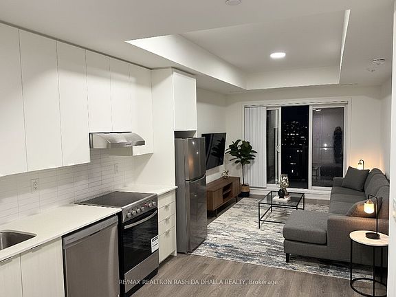 Welcome to the prestigious Daniels Keelesdale community - where modern urban living meets contemporary elegance. This bright, sun-filled suite features an open-concept layout with sleek laminate flooring, high ceilings, and floor-to-ceiling windows that fill the space with natural light.The modern kitchen boasts quartz countertops, a spacious island perfect for entertaining, and abundant storage and counter space. The primary suite offers a walk-in closet and a serene, stylish retreat.Enjoy exceptional amenities in the dedicated two-storey clubhouse, including a fitness centre, party room, co-working space, BBQ area, pet wash station, and community garden plots.Perfectly situated within walking distance to the upcoming Eglinton LRT (Keele Station), public transit, shops, restaurants, and everyday conveniences - including Walmart, pharmacy, clinics, and cafes. Minutes to Highways 401 and 400, and steps from scenic walking and cycling trails, and the new city park.Move-in ready and waiting for you to call it home!