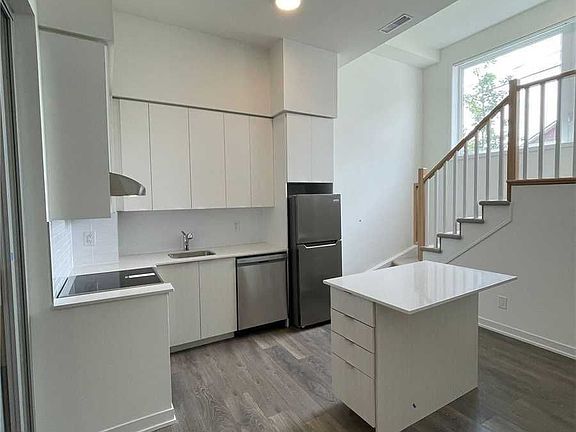 Welcome to the master-planned Daniels Keelesdale community. This is an opportunity to lease a modern one-bedroom stacked townhouse-style condominium with 10.5' ceilings, and a vaulted portion with 12' ceilings that uniquely combines convenience and privacy with its own direct access from street level. This bright and sun-filled suite features a functional open-concept layout with stylish and durable laminate flooring throughout.The location offers incredible convenience and connectivity. You are just minutes from major highways 401 and 400, with TTC transit options and the future Eglinton Crosstown LRT nearby. This vibrant neighbourhood is surrounded by beautiful green spaces, including King Georges-Keele Parkette, Green Hills Park, and Gulliver Park, all just a short walk away. Enjoy easy access to a wide variety of shopping, dining, and entertainment options. This unit includes one parking space.