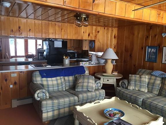One of the largest and most level waterfront lots on Cedar Pond. This property has a lot to offer, beautiful custom woodwork, fully furnished, large outdoor patio, owned private dock, deck off the living room, a 2nd floor balcony overlooking the pond, complete with a huge garage with overhead storage that could be finished to a game room or guest suite. ATV trail and parking is only a couple miles up the road. Direct trail access to leave from the property has received town approval and is currently awaiting state approval. Just come see it for yourself and be your own judge. Snow mobile trails access. Boating, swimming, fishing, relaxing and making memories.