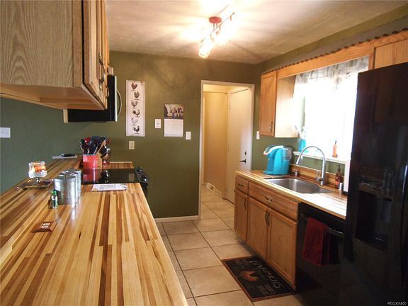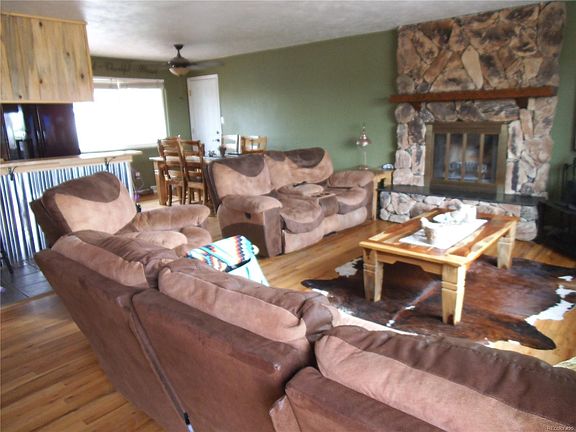 Affordable, small town living only 35 miles from Denver. Plenty of shopping opportunities 20 miles away. Lovely ranch home with full, partially finished basement with a bath, family room and two bedrooms (non-conforming/window size). Open concept living/kitchen/dining area with a wood fireplace perfect for gatherings of friends and family over the holidays. Kitchen updated with custom butcher block counters, black appliances and a rustic touch. New air conditioner (June 2018). Very private with no neighbors in back or front of this home. Large yard and amazing mountain views. New carpet just installed in basement.