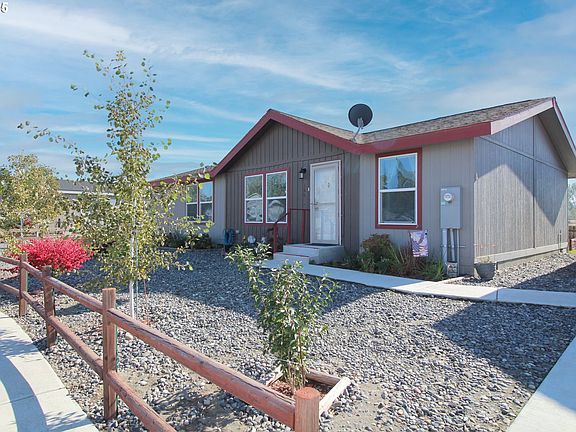 Welcome to peaceful country living in Irrigon! This super clean, well-maintained 3 BR 2 BA home is tucked away in a quiet neighborhood that offers all the small-town charm without all the yard work. The lot is beautifully landscaped with rock gardens—so you can trade your mower for a lounge chair and enjoy the scenery instead. Step inside and you’ll find a light, bright, and airy open-concept layout with vaulted ceilings and an easy flow between spaces. The living area is spacious and welcoming—perfect for cozy nights in or casual get-togethers. The kitchen is a show-stopper for anyone who loves to cook (or just loves extra counter space): tons of cabinets, stainless steel appliances, a dining bar for quick bites, and a cheerful nook with a slider that opens to the backyard. Bonus: all appliances stay—including the washer and dryer! The primary suite offers the ideal retreat with its walk-in closet and private bath featuring a large shower. Both secondary bedrooms also have walk-in closets, so there’s no shortage of storage here. Out back, unwind beneath the pergola-covered deck while enjoying views of the peaceful fields that stretch out behind the property. It’s the perfect spot for morning coffee, evening chats, or a good book on a lazy weekend afternoon. A detached two-car garage provides plenty of space for parking, hobbies, or extra storage. With its low-maintenance yard, clean modern comfort, and country-quiet setting, this home offers the best of both worlds—relaxation and convenience. Come see why life feels just a little easier here!