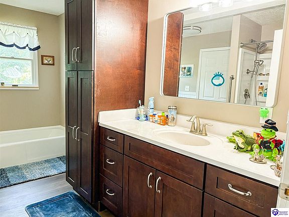Come check out this 4 bedroom, 2 bathroom home in Elizabethtown. Perfectly situated on just over 1 acre of land, this home is within 2 miles of I-65 and Dixie Hwy. making it a great location with easy access to the interstate and local businesses. Upon entering, the living room opens up to the eat-in kitchen with hard wood cabinets. Off of the kitchen is one bedroom and access to the two car garage. Down the hallway, there are two nicely sized bedrooms as well as the primary bedroom with access to the large main floor bathroom that includes a handicap accessible shower and raised toilet. Downstairs, the basement has a large open area as well as a bonus room with a closet. There is a second full bathroom and a large storage area in the laundry room. More pictures to come! Showings begin Tuesday, July 29th. Don't miss out on this one, schedule your tour today!