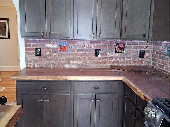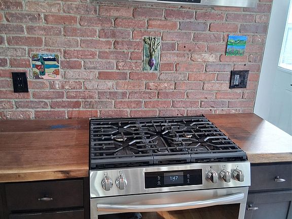 Luscious amazing perennial gardensReal brick backsplashNew slow close cabinetsNew stainless gas stove