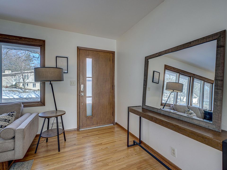 Welcome home to this charming mid-century rambler on a large 1/3 acre lot in the highly sought-after Mounds View School District. Set in a quaint neighborhood just a short walk to many nature trails, parks, and lakes you’ll be sure to enjoy. The main floor boasts a tastefully updated kitchen to go along with original mid-century details, gleaming hardwood floors throughout every space including the 3 bedrooms, sun-filled living and dining rooms, and full bath. You will love the spacious walkout lower level with a cozy wood-burning fireplace, office/exercise room, and ¾ bath. Head outside and bask in the sun on the south-facing, multi-tiered deck or find a moment to getaway in the huge 30x16 backyard workshop/man cave/potting shed complete with wood wood-burning stove. This home is a must-see!