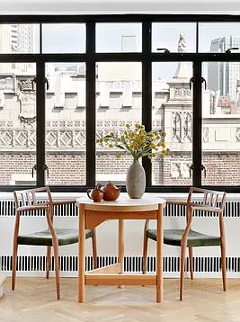 Contemporary luxury meets magnificent waterfront views in this desirable three-bedroom, three-bathroom Brooklyn Heights duplex cooperative with breathtaking outdoor space. This beautifully combined two-story residence has been designed to maximize light, views and serenity throughout. Modern updates and premium finishes meld perfectly with historic and charming details, including grand proportions, soaring beamed ceilings and refined millwork. On the lower level, a truly exceptional foyer makes a dramatic first impression with a wall of built-in shelving that gently curves into a sunny den. The shelving provides a concealed second entry into one of the bedroom's, which is also accessible from the den. The second corner bedroom flanks the opposite side of the den, and down the hallway, the master suite boasts gorgeous western views, two spacious closets and an en-suite marble bath with an oversized rain shower. A second full bath and abundant storage space runs throughout this well-planned floor. Upstairs, expansive living spaces beg to entertain alongside picture-postcard views that stretch across Brooklyn Bridge Park and the harbor to Manhattan, Governors Island and beyond. The large living room flows to a hall with a full bathroom and on to the formal dining room where the large terrace offers unobstructed access to this home's iconic vistas. Enjoy al fresco dining and relaxing here, or put your culinary skills to the test in the bright eat-in kitchen, perfectly equipped with custom cabinetry, a pantry, top-notch stainless steel appliances and a convenient service entry. Central air adds year-round comfort in this one-of-a-kind Brooklyn Heights haven. Currently configured as three-bedroom, this expansive layout could easily accommodate the addition of a fourth bedroom with minor modifications*. 160 Columbia Heights is a lovely Art Deco cooperative where residents enjoy part-time doorman service, live in super, laundry, bike room and storage. Pets and pieds-à-terre permitted with board approval. Located within the Brooklyn Heights Historic District, directly adjacent to the renowned Promenade and massive Brooklyn Bridge Park, this fantastic location enjoys acres of glorious waterfront outdoor space. The shops, services and dining of Brooklyn Heights and Dumbo are within easy reach, and transportation from this sought-after neighborhood is a breeze with the 2/3, 4/5, A/C, and R trains plus the ferry at Pier 1 nearby. Unfortunately washers and dryers are not allowed in the apartment. *Each person should consult with his/her own attorney, architect or zoning expert to make a determination as to the feasibility and legality prior to making any modifications to the apartment.