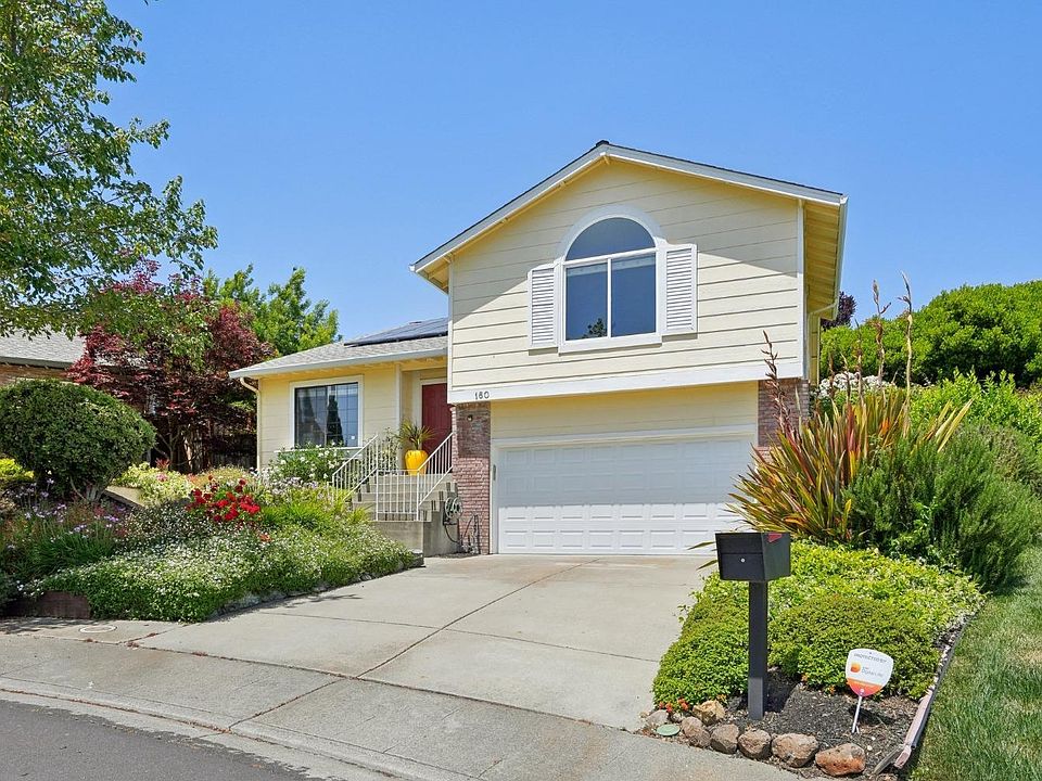 Discover serenity in this Glen Cove 2-Story Gem with beautifully maintained gardens! This home is surrounded by gorgeous, lovely gardens, offering a serene sanctuary on a quarter-acre lot. The living areas are bathed in abundant natural sunlight, showcasing bamboo floors and vaulted ceilings. The architecturally designed floor plan is ideal for entertaining, featuring fabulous spaces and a remodeled kitchen with quartz countertops, a wine refrigerator, a gas stove, and stainless steel appliances. The primary suite includes a remodeled bath with double sinks and a water view. The versatile bonus room downstairs can serve as an office, gym, or art studio. Step outside to the large, private backyard patio, ideal for dining under the stars or enjoying the warmth of a fire pit. Treasure the lush gardens, brimming with fruit trees (lemon, orange, avocado, peach, Asian guava), herbs (rosemary, thyme, oregano, basil, chives), beautiful flowers, and natural rock garden beds. Additionally, this home features Solar, air conditioning, a new water heater, and a newer furnace ensuring comfort and efficiency. Nestled in a cul-de-sac, this home is just minutes from Glen Cove Waterfront Park, Marina, and Benicia State Recreation Area, with easy access to Benicia, Walnut Creek, Napa & SF