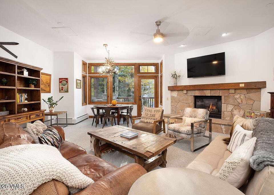 This desirable corner residence offers two balconies that welcome refreshing summer breezes through custom screened doors. The spacious, light-filled living area showcases views of golden Aspens and opens seamlessly to the dining and kitchen areas—perfect for entertaining. With three bedrooms and three bathrooms all on one level, the home comfortably accommodates up to eight guests. New appliances (washer/dryer, dishwasher, oven, microwave, and refrigerator) were installed in 2024.