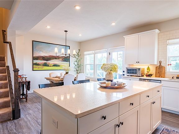 Beautifully upgraded and well maintained “Wexford” model in the coveted, Ridge at Highland Pine Community. Maintenance free landscaping, modern stone, and detailed shutters welcome you into the entry level. Easily access the two-car garage, large storage area, and walk out basement. The main level features an open concept with 9 ft ceilings, pristine vinyl flooring, powder room, and impressive bay window. Light and bright!-The kitchen boasts a large quartz island and counter tops, ample storage, upgraded cabinetry, stainless steel appliances, backsplash, and recessed lighting. The 2nd floor features a generously sized owner’s suite with custom walk-in closet, double shower heads, and modern white tile. Two additional bedrooms, a full bath, and convenient laundry finish out the top floor. Enjoy the private wooded views and daily sunsets on the new Trex deck. Conveniently located within minutes of I-279, I-79, McCandless Crossing, McKnight Road, and Mayer Community Park.