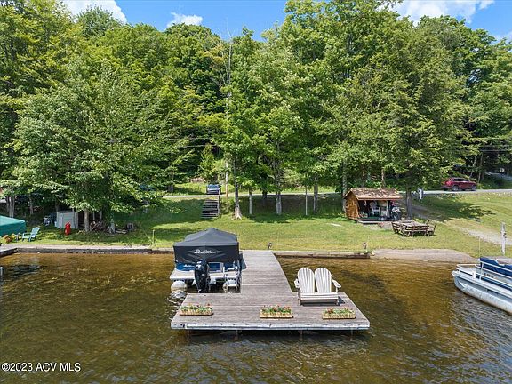ALONG THE NARROWS of the Fulton Chain of Lakes is this charming cottage with 40' sandy frontage, yard area and boat dock just across the road. Beautiful stone fireplace is focal point of the living room which opens to enclosed porch. Two bedrooms and a bath complete the main floor. Downstairs is a neat kitchen with stone walls and another enclosed porch. One stall garage and plenty of yard and parking area. Very little would be needed to make this a year around home. Trail #4 is only a couple hundred feet away. Town square footage is not correct, square footage was measured by agent. Basement level enclosed porch is not included in the square footage because it is not heated.