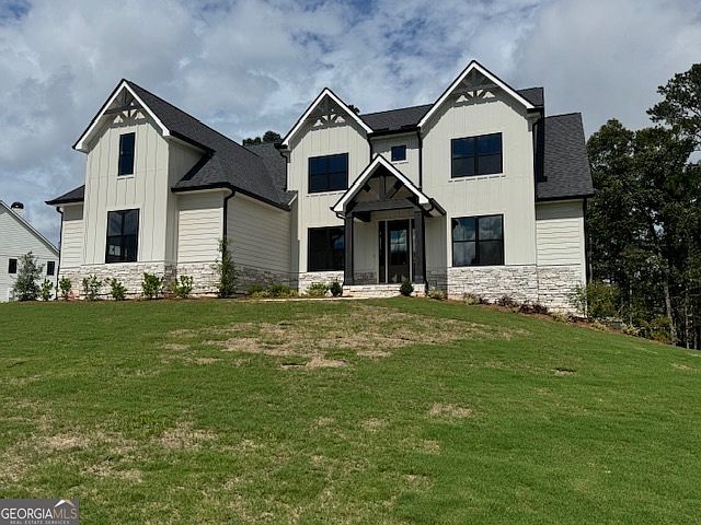 Nestled within the esteemed final phase of The Canoe Club community, the Lakeland plan on a full basement & 3 car garage by New Leaf Homes offers a rare opportunity for luxurious living on a spacious one-acre homesite. This exquisite residence boasts a thoughtful layout designed to accommodate modern lifestyles with ease and elegance. As you step inside, you're greeted by the inviting ambiance of a well-appointed home including 8 ft interior doors & high end finishes. This plan features 4 bedroom each with its own full bath, providing both comfort and convenience for family and guests. The owners suite is a true retreat, boasting hardwood floors, a large walk-in closet and a master bath adorned with double vanities free standing tub, a separate tile shower-a haven of relaxation and indulgence. The heart of the home is the open kitchen, where culinary dreams come to life. This kitchen is a chef's dream, 66" refrigerator, large zline gas range, quartz countertops, and a large island, this space is as beautiful as it is functional ensuring a seamless cooking experience. A walk-in pantry adds to the convenience, providing ample storage for pantry essentials. Entertain effortlessly in the open-concept family room, adorned with hardwood floors and flooded with natural light. Step outside to the covered back Deck with an outdoor fireplace and soak in the tranquility of the expansive backyard-a perfect setting for outdoor gatherings and relaxation. Inside, tiled bathrooms and laundry add a touch of luxury and practicality. Additional features of this home include hardwood floors in the main living areas and primary bedroom, a 3-car garage with extra storage, and professional landscaping and irrigation. Located just minutes from Peachtree City, Piedmont Hospital, Fayetteville, Trilith Studios, with convenient access to Atlanta Airport, The Canoe Club community offers resort-style amenities, including two lakes, a fitness center, boat storage, pool, four lighted tennis courts, and a clubhouse. CCR's, Design sheet & Plat in Assoc Docs. See agent for Builder incentives with preferred Lenders. All selections have been made. Completion estimated at end of August.