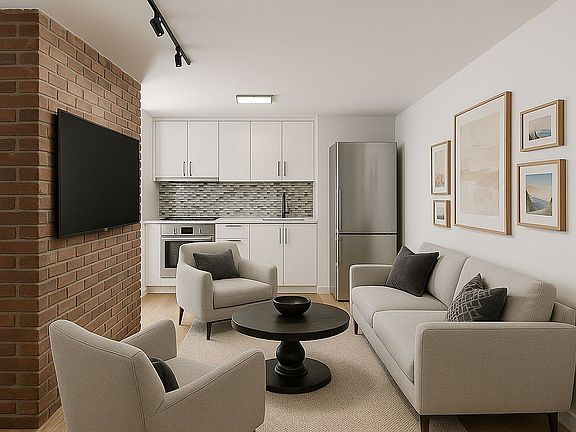 From the moment you enter, you’ll notice the abundant storage and clever design that make city living effortless. A spiral staircase leads down to the living room, where exposed brick walls and a wood-burning fireplace set the stage for cozy nights and stylish entertaining. Sunlight floods the space through oversized windows, highlighting every textured detail.