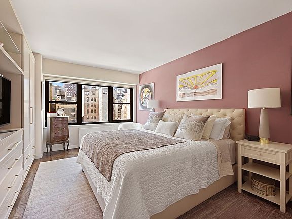 Facing west with great light and open views of Murray Hill's historic townhouses, is your first impression when you step into this spacious one bedroom, one and a half bath home with endless possibilities. As you enter the apartment there is a dedicated foyer with two closets leading to a large living room with an adjacent dining alcove that can be converted to a 2nd bedroom. The primary bedroom with an en-suite bath is large enough to house a king-sized bed and has three ample closets and a wall of tastefully designed built-in cabinetry. There is a windowed galley kitchen facing south, a powder room for guests, parquet wood flooring and an abundance of closet space. Don't miss the opportunity to make it your own.
