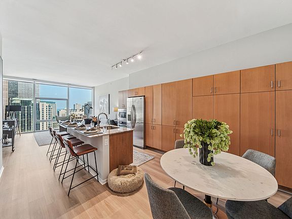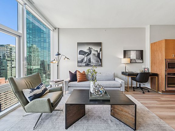 Step into your residence and you'll find hardwood inspired flooring underfoot, floor to ceiling windows framing panoramic skyline, river, and lake views, and modern fixtures throughout. Kitchens boast granite countertops, stainless steel appliances, and custom cabinetry, while designer roller shades, sleek light fixtures, and a refined neutral palette elevate your everyday. In unit washer/dryers and open layouts make living here effortlessly comfortable.