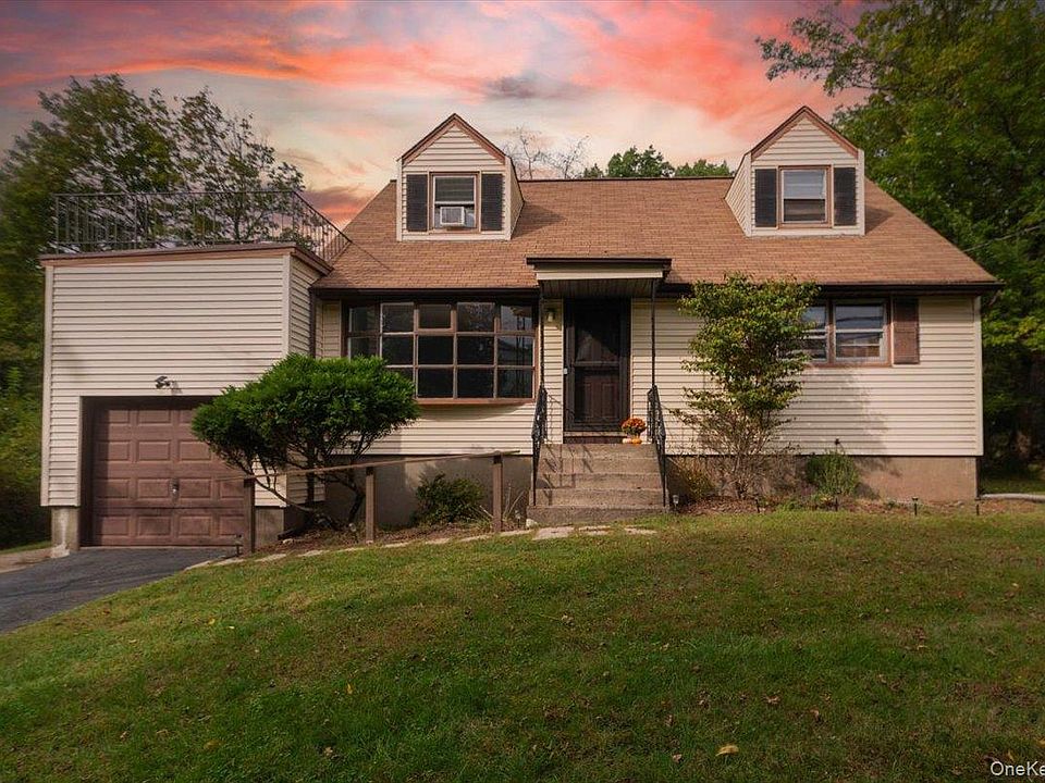 Perfectly positioned where Wesley Hills, Spring Valley, and Monsey meet, this spacious four-bedroom, two-bath Cape combines classic character with modern comfort. The home features two large second-level bedrooms with hardwood floors and a full bath. One bedroom includes terrace access, built-in wood bookshelves, and generous closet space, including a cedar closet. The first floor offers a bright living room with a bay window and hardwood floors, plus two additional bedrooms with wood shutters and a nearby full bath. The kitchen includes wood cabinetry, double windows, and laminate flooring. Adjacent to the kitchen is a beautiful glass-enclosed room that opens to an attached deck overlooking a private, tree-lined backyard. The freshly painted full basement offers inside and outside access and can be used for laundry or additional space. Attached one-car garage.