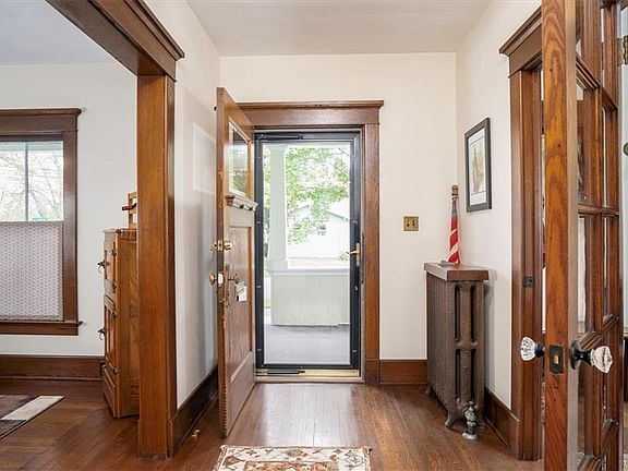 Beautiful 1912 historic village home w/ original interior & charm lovingly preserved. Perennial gardens, covered front porch w/ tongue & groove ceiling. Original woodwork & hardwood floors. French door to Study/Den/Office. Roomy Living rm w/ leaded glass window, formal Dining rm & Eat in Kitchen w/ original warm wood cabinets & hardware, walk in pantry storage. Lovely wood staircase to the second floor. Three bedrooms, possible 4th. Tastefully updated full bathroom keeping w/ the design & feel of the home. Two large built-in linen storage "cabinets" in hallway. Walk up to extra large attic space w/ soaring ceiling, great potential. Mud room & full dry basement with higher ceilings for additional usable space. Lovely patio, more perennial gardens and charming storage shed in backyard. One block from Main St. and one block East of Evans. Wonderful Village location. Showings begin Saturday June 8th. Offers will be heard Wednesday evening June 12th.