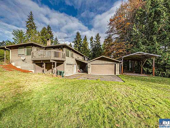 This 4 BR, 4 BA conveniently nestled between Sequim & PA on 2 acres is an absolute gem. Breakfast bar & family dining features a connected wood deck. Home boasts 2 en suite full bathrooms, skylights galore, wood stove, brick hearth, firewood dumbwaiter, spacious unfinished basement w/ roll up door. Covered RV parking, concrete pad, detached garage, wide open yard, covered deck and patio entry. A must see!