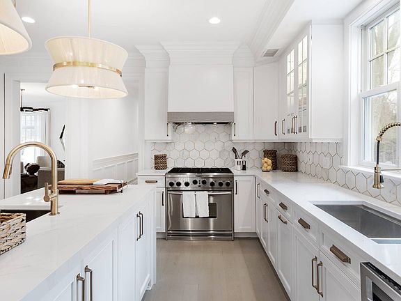 Just minutes from Sag Harbor Village and steps from Long Beach, this beautifully renovated 5-bedroom, 4.5-bathroom home blends contemporary design with classic elegance.The open-concept layout includes two spacious living areas, a dedicated office/den, and a stylish, fully-equipped kitchen. Sunlight fills the main living room, featuring vaulted ceilings, a charming fireplace, and a wall of windows that overlook the surrounding gardens and pool area. French doors from the living and dining areas lead directly to the backyard, creating seamless flow between indoor and outdoor spaces.Outside, a 20x40 heated Gunite pool offers a private oasis, bordered by mature evergreens and fully fenced for safety, with additional separation from the lawn for added privacy. An expansive deck, off the dining area, features a built-in BBQ and fire pitperfect for entertaining or relaxing. Further, a stone patio, off the living room, provides additional space for lounging, completing this outdoor retreat.The home includes five spacious bedrooms, each with their own dedicated closet space. The luxurious primary suite features a large walk-in closet and an en-suite bath complete with a soaking tub, water closet, and dual vanity.The finished lower level provides additional leisure space with a bar, pool table, media area, gym, and wine cellar, plus an extra bedroom with a full bath. Other practical features include a large mudroom entry off the 2-car garage, a laundry room, storage space and a full bath on the main floor.Perfectly situated just a 5-minute drive from Sag Harbor Village, the property offers easy access to local beaches and attractions. Residents also enjoy access to private tennis courts in the exclusive North Haven community. Whether you're seeking a year-round residence or a summer retreat, this home offers a serene, luxurious lifestyle in Sag Harbor.