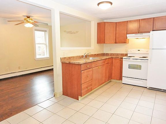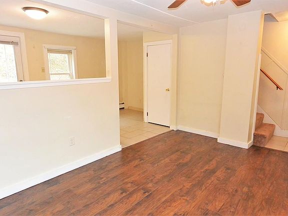 Updated townhouse style apartment with laminate hardwood floor in the living room, updated eat in kitchen, patio area for grill and table, nice back yard. Second floor has updated full bath and 2 bedrooms. Your own private basement with laundry hook ups and room for storage. Tenant pays electric and very economical gas heat and hot water. Trash disposal included on site! 2 parking spots at your front door! Well managed, clean building with many long term tenants. A great place to live! Full screening, credit report and background check required with application. First, last and one month security required. No smoking and no pets. Minimum 1 year lease but would prefer long term tenant.