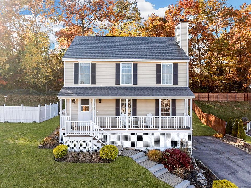 Welcome to your dream colonial home, nestled in a charming neighborhood with wide sidewalks and inground utilities! This beautifully maintained 3-bedroom, 2-bathroom residence offers both comfort and style. Step inside to find stunning hardwood flooring throughout, accentuating the spacious living areas. Cozy up by the inviting wood-burning fireplace, perfect for those chilly evenings. The modern kitchen is a chef's delight, featuring sleek stainless steel appliances and ample counter space, ideal for preparing meals or entertaining friends. Venture outside to discover a gorgeous composite deck, perfect for hosting gatherings or enjoying quiet mornings in your private backyard oasis. The front of the home boasts a lovely farmers porch that spans the length of the house, providing an idyllic spot to savor stunning sunrises with your morning coffee. Convenience is key with public water and sewer, making life a breeze. Located in a desirable neighborhood, this home is a true gem! Don't miss your chance to make it yours—schedule a showing today!
