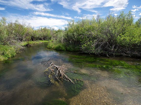Big mountain views, nice fishing stream runs the length of the ranch and is private with good water rights. Very unique parcel!