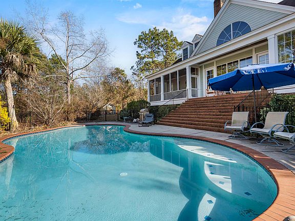 Heated poolBrick fireplaceIntricate custom moldingOpen balconiesLand borders sanders creekPrivate bathDual staircases
