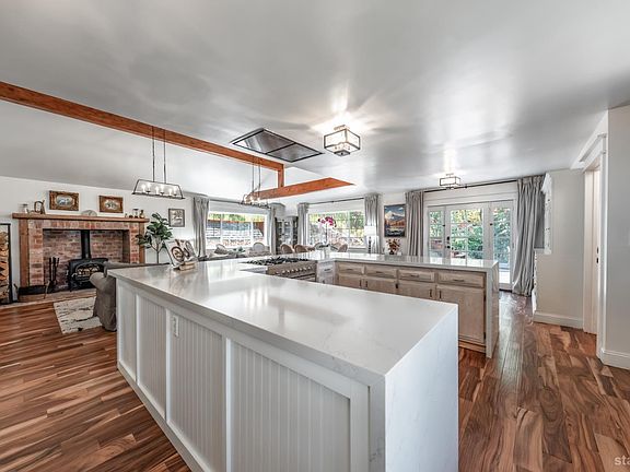 This beautifully remodeled home is just a short walk from downtown Markleeville, and set in a secluded location across the street from the Markleeville Creek. The home features four lovely bedrooms, two with built-in murphy beds, and two full baths. The cozy great room features a wood burning stove with a brick hearth surround, creating the perfect gathering spot. A specious two car garage includes a utility room and plenty of storage. Enjoy both covered and uncovered decks, mature pines and fruit trees, and scenic views from the newly built outdoor sauna!