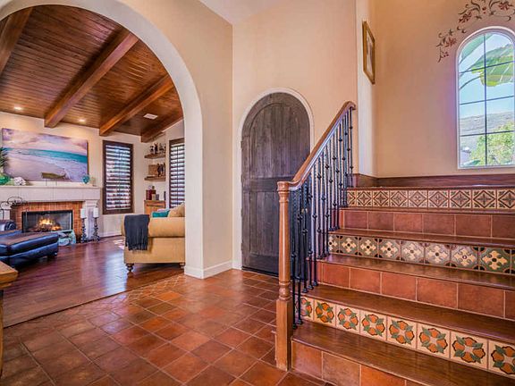 Spectacular Spanish Villa in the Mahogany tract in Long Canyon. Upgrades Galore including custom cabinets and built-ins throughout the house, hardwood and tile flooring on the first floor, custom baseboards, crown moldings, built-ins in office, upgraded stone counters in kitchen with huge center island great for entertaining, built-in entertainment center in family room, upgraded fireplaces in living room and family room, Wrought Iron staircase with wood and inlayed tile steps, Large Bonus roomupstairs with custom surround sound system and french doors to large balcony with mountain views, each bedroom has its own private bath, large master with fireplace, custom crown moldings and views of the surrounding hillsides, master bath has upgraded tile shower and Chiseled Travertine flooring, center courtyard has a beautiful fireplace for relaxing outside, back yard has a pool and views, brand new 75 gallon water heater and pool filter. Garage was custom remodel to accommodate larger vehicle or boat. A must see home!!!
