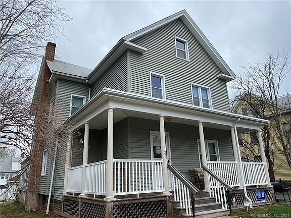 Oversized three-family in excellent condition, less than a mile to Wesleyan! Will be conveyed with one vacancy; PERFECT FOR OWNER-OCCUPANT. Two 2 bed/1 bath units and one 1 bed/1 bath unit. This property also includes a four-car garage in stellar condition. Mechanicals in good shape, full basement, off-street parking, three sets of washer/dryer hook-ups, replacement vinyl windows and newly vinyl-sided. Front porch and rear stairs recently rebuilt with pressure-treated lumber and supports. New basement hatchway doors. *All interior photos are of first-floor unit.*