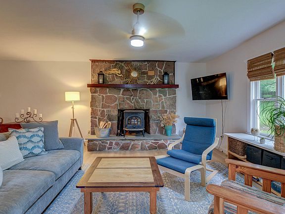 Spa like stylePublic sandy beachNew washer and dryerUnderground electricTwo out buildingsWood cabinetryStone fireplace