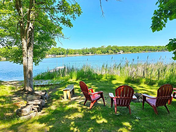 Experience the Embodiment of Lakeside Living on Buchanan Lake! Situated at the end of a dead-end road, this home offers a sense of Privacy & Seclusion while still conveniently located just 5 minutes from town. The home’s interior seamlessly combines the Allure of a Rustic Cottage with the Convenience of Modern Comforts. The main level offers a Warm Atmosphere & well-designed floor plan, Optimal for One-Level Living. Head upstairs to find an additional 408 SqFt, designed as an open-concept bedroom with it's own bathroom. This Versatile space is Perfectly suited as a Bunkroom, offering Guests their own Private Oasis. Outside, the property boasts a Level Sand Beach, Panoramic Views, & a Spacious backyard with Ample Space for outdoor fun. Additionally featured is the detached garage, equipped with power & large attic that could easily be finished to create a charming guest quarters. Don't miss the opportunity to own a slice of Lakeside Paradise!