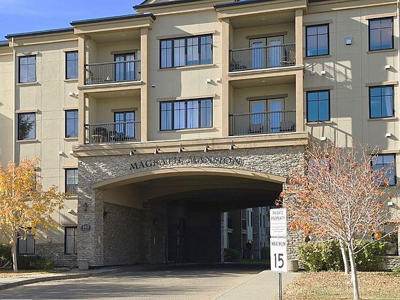 Visit the Listing Brokerage (and/or listing REALTOR®) website to obtain additional information. Experience luxury living at Magrath Mansion, one of Edmonton’s most desirable locations. This beautiful 1-bedroom condo with a small den features a bright open-concept layout and 9-foot ceilings that create a spacious, welcoming feel. The modern kitchen offers cherry wood cabinetry, stainless-steel appliances, and plenty of counter space, while the full bathroom includes a relaxing jetted tub. You’ll also enjoy the convenience of in-suite laundry room, a large private balcony, and two titled parking stalls—one heated underground with a car wash bay and one surface stall—plus a separate storage locker. Magrath Mansion is a secure, professionally managed 18+ concrete building with fan coil heating and cooling. Residents have access to premium amenities such as a fitness centre, hot tub, steam room, theatre room, social lounge with kitchen and library, and an outdoor entertainment area with BBQ and fireplace.