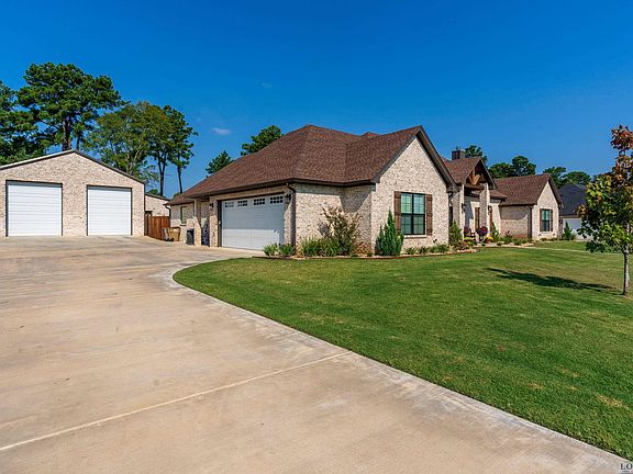 Immaculately maintained and only three years old, this spectacular 4-bedroom, 3.5-bathroom home is located in the gated Mallard Cove Subdivision off Country Club Road in Hallsville ISD. Thoughtfully designed for both comfort and entertaining, this home offers spacious bedrooms with walk-in closets, beautifully finished bathrooms, and an inviting layout with plenty of room to gather both inside and out. The stunning kitchen boasts an oversized island, abundant cabinetry, a well-planned appliance layout, and a large walk-in pantry. The primary suite is a true retreat with a gorgeous walk-in shower, soaking tub, his-and-hers vanities, and a massive closet complete with built-ins. A private guest suite features its own ensuite bath, while the additional two bedrooms share a large third bathroom with double vanities. The living room is generously sized, highlighted by a cozy fireplace and built-ins, and flows seamlessly into the dining and kitchen areas. Outdoor living takes center stage with an oversized back patio designed as an extension of the home, complete with a fireplace, outdoor kitchen, and both covered and uncovered spaces for entertaining. For hobbyists or those needing extra space, the property includes a 30' x 40' insulated workshop with an attached 20' x 14' heated and cooled office(not included in sq. ft.). The landscaped lot is over half an acre, enclosed with a stained privacy fence, offering both beauty and functionality. The garage is currently heated and cooled as they use this as an exercise area! This property truly has it all and is a must-see!