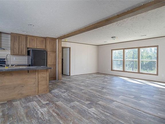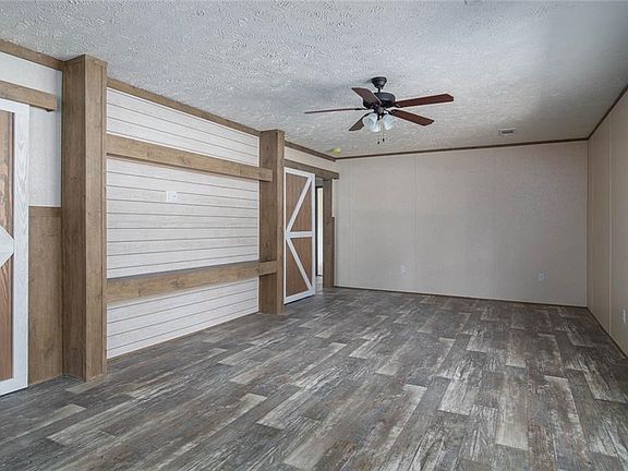 Nice country living not too far from town in a brand new 4 bedroom, 2 full bathroom manufactured home. Awesome details such as sliding barn doors, built-in entertainment area, craft room/storeroom, keeping room, shiplap wood accents throughout, and laundry room. Split floor plan home with private Master entrance. The ensuite is equipped with double vanity, garden tub, and a stand-alone shower. Additional three bedrooms and hall bath are off separate hall near the living room. Guests' rooms are spacious with walk-in closets. Nice large kitchen with double sink on an island with surrounding bar. Plenty of cabinet space as well as a dishwasher. Home is equipped with a fantastic front porch overlooking the private 1 acre lot.