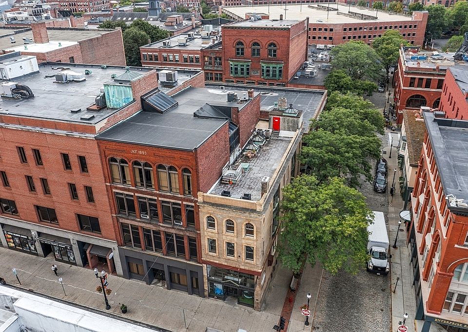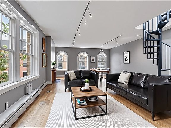 Rare contemporary penthouse loft condo with a spectacular private rooftop deck offering sweeping views of downtown Lowell! One of the few lofts in all of Lowell which have a private roof deck! This true loft showcases soaring ceilings and abundant natural light from 14 oversized windows & 2 skylights. The wide-open floor plan features bamboo floors, a modern kitchen with granite counters, stainless appliances & gas cooking, plus in-unit laundry. Both the living room and private bedroom offer cozy fireplaces, creating inviting spaces to relax. A striking spiral staircase leads to your rooftop oasis, perfect for entertaining or unwinding above the city while gazing at the stars. Multiple parking options are available in nearby city garages. All just steps from Tsongas Arena, Lowell Auditorium, dining, shops, & the arts. Easy access to the Lowell Connector Rt 3, 495 & 93.