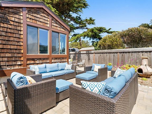 Welcome to Monterey Dunes Colony, a private gated community situated between Santa Cruz and Monterey. Residents enjoy the best of coastal living just minutes from shopping, dining, and endless outdoor activities. This single-level end unit is one of the most desirable floor plans in the development and rarely comes to market. Enter through a private courtyard, perfect for entertaining, which flows into an open living space with vaulted ceilings and abundant natural light. Take in the sounds of the surf and ocean breezes from this refreshed three-bedroom home, featuring bay windows overlooking the sandy dunes, upgraded appliances, flooring, lighting, doors and hardware throughout. The primary suite offers private access to the back deck, providing separation from the other two bedrooms and bath for added privacy.
