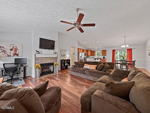 This home will not last long so be sure to get tour scheduled quickly! Beautiful three bedroom, 2 bath home with split bedroom plan, partially fenced back yard, large open living room and kitchen with vaulted ceiling and separate island/breakfast bar and stainless steel appliances, granite countertops and beautiful covered back patio and great fire pit in the back yard! The home features a stacked stone gas log fireplace and beautiful laminate flooring. This home offers a very large master bedroom with dual sinks, tub/shower, and nice walk in closet. Also offers a two car garage on a large lot in a very private setting! Just minutes away from shopping and restaurants! Call for a tour today!
