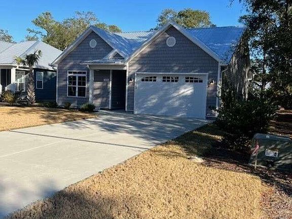 Spacious 3BR, 2BA FULLY FURNISHED (w/ few exceptions) island cottage with double garage in quiet west end location! Only 3 minute golf cart ride to the beach! Living is easy with the open living, dining & kitchen area with 9 foot ceilings throughout and extensive crown molding all on one level that is perfect for entertaining at the beach! There is no carpeting in this breach gem as the home boasts beautiful luxury vinyl and ceramic tile. The upgraded kitchen comes fully equipped with stainless appliances, granite counter tops, white cabinetry, and a large kitchen island with plenty of seating along with an offset dining area & separate breakfast nook. The master suite includes a large walk-in closet, private bath w/double vanity, & walk-in shower. Enjoy coffee or your favorite beverage in the large, screened-in back porch that leads out to the expansive concrete grilling patio that overlooks the fully sodded backyard with irrigation system that is on a separate meter. The backyard is complete with an outdoor hot/cold enclosed shower to keep all the sand outside after a wonderful day at the beach! There's a generous laundry room, lots of closet space, ceiling fans in all bedrooms & living room. The finished double garage also provides plenty of room for storing all of your beach toys and ample parking for your golf cart. Property is not in flood zone and there is no HOA.