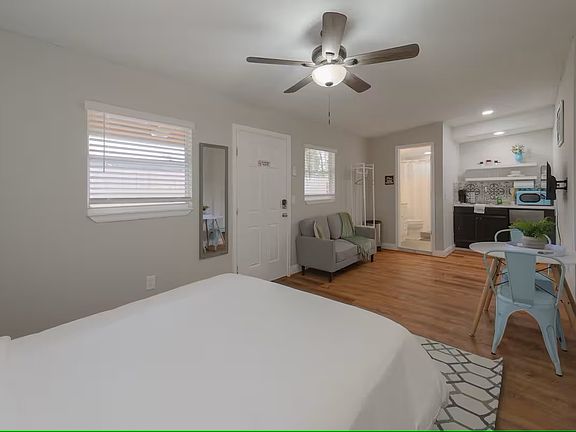 Discover the perfect blend of comfort and character in this thoughtfully renovated, stylish studio apartment. With an open living area, a queen-sized bed, and a full bathroom, it's the ideal retreat to relax and recharge after a busy day. The cozy kitchenette, complete with a mini fridge, microwave, Keurig, and dining table, ensures you have everything you need for a comfortable stay.