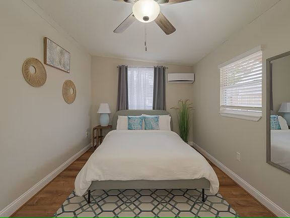 Mini fridgeCozy kitchenetteQueen-sized bedDining tableShared backyardSmart tvMini-split heating and air