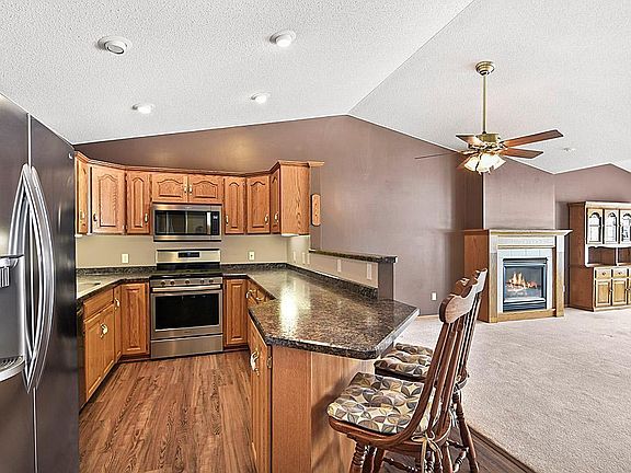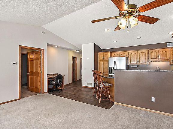 Lovely one-owner golf course townhome in demand River Oaks Villa Plat 5.Charming open sunny floor plan featuring a handy recessed laundry alcove with cabinets and natural woodwork with raised panel doors.The kitchen features those up-to-the minute stainless steel appliances, generous counter top prep area as well as that all-important breakfast bar.Don't miss those essential roll-out lower cabinet shelves and the corner lazy susans. In addition there is the extra large and smaller size sinks for easy meal preparation. Then you have a wonderful great room featuring a fireplace and a wonderful view of the golf course.The charming china cabinet is permanently mounted.This property has been lovingly and carefully cared for since new.Don't pass-up this opportunity to enjoy one-level living with accessible features such as 36" doors, grab bars in the baths, a pull-down seat for extra ease in the shower and no interior stairs. There is plenty of storage space in the home, even a lighted closet, plus closets and cabinets as well as the garage.This property is located in the Rocori Independent School District #750.