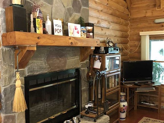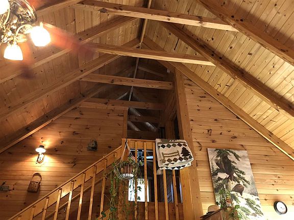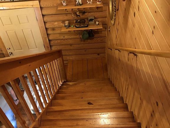 This cabin is nestled on 7.89 acres, just right outside of town. Cabin sets on a nice level yard surrounded by woods , private but not out of reach!!!!! Lots of wood detail Living room and kitchen combo with wood burning fireplace, master bedroom on main level, walk in closet, large laundry room, bathroom, upstairs holds two bedrooms and another full bath. Drive way is gated. Total of 7.89 acres. Home has a covered front porch across the front with swings. Back porch is open and seller has a beautiful flower and veg. garden they plan on leaving with new owner if wanted. Property includes a nice workshop/ storage building and a detached carport.