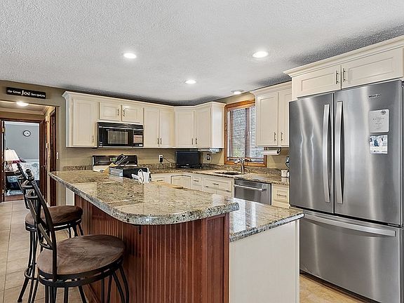 This Belvidere Cape is located at the end of a dead end street. Enter through the side door into a foyer with a double closet and a vaulted ceiling the skylight allows for natural light. You first notice the beautiful and spacious kitchen with an granite topped island and plenty of cabinets. French doors lead to a deck overlooking your inground swimming pool. The kitchen is open to the dining room which has hardwood floors and a bay window. The living room features a fireplace and another bay window. The third bedroom completes the first floor. Upstairs has two good size bedrooms with plenty of closet and storage space, and a full bath room. The basement is mostly finished complete with a wet bar and half bath. This home has been very well cared for.... You will not be disappointed!!
