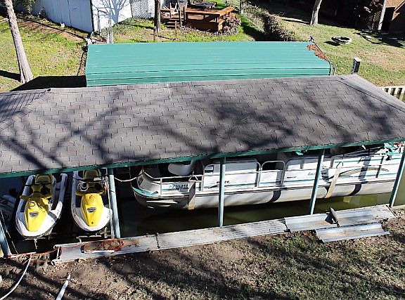 GOOD WATER ON THIS 3-2-2CP WATERFRONT ON 3 LOTS. APPROX 1824 SQFT, OPEN DESIGN, LARGE UPPER DECK, NICE BOATHOUSE WITH BOATLIFT & DOUBLE SEA DOO LIFT. CARPORT HAS LARGE ADDITIONAL STORAGE. FENCED YARD, LARGE TREES.